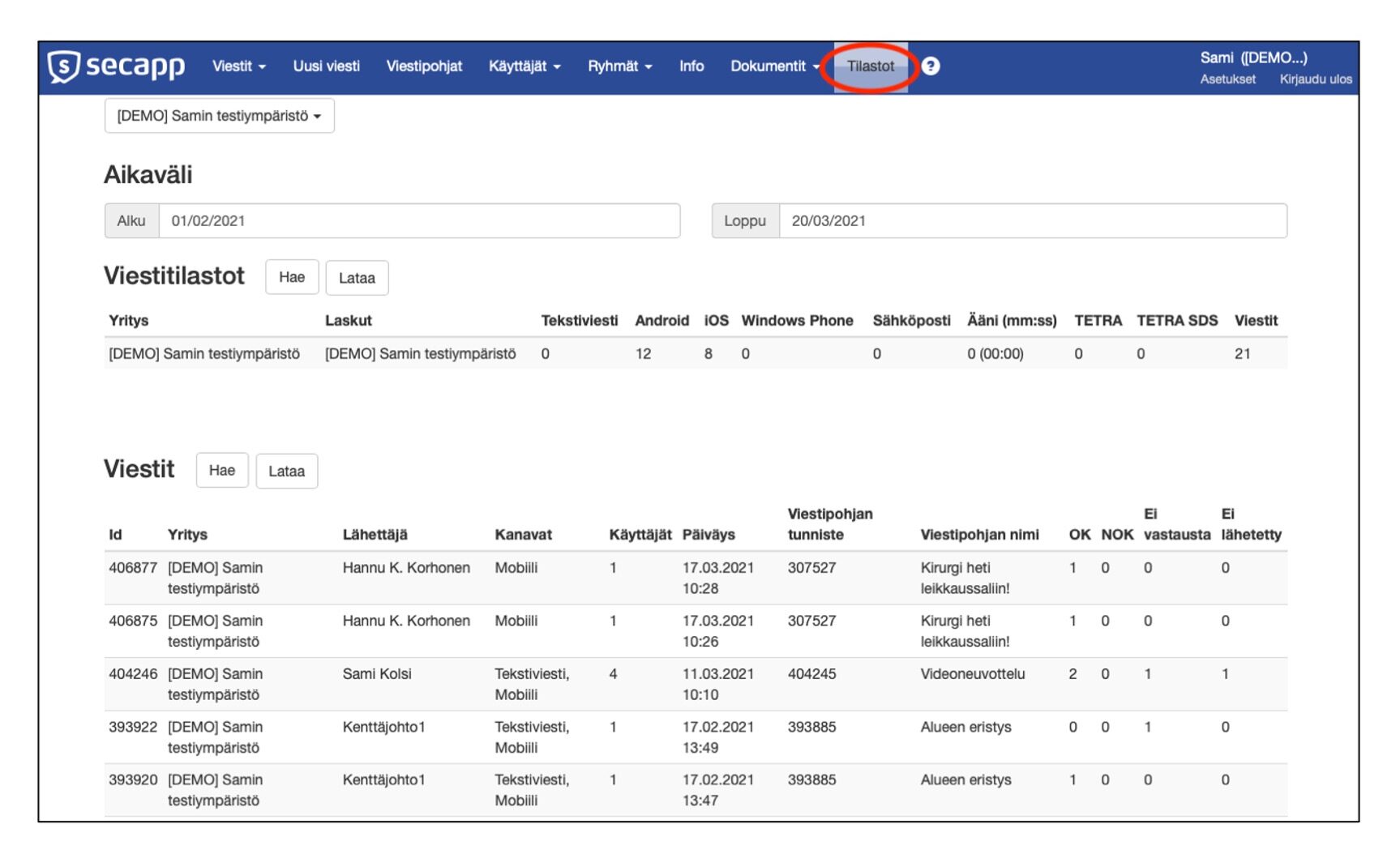 Secappin viestitilastot tarjoavat entistä paremmat ja kattavammat tiedot lähetetyistä viesteistä organisaatioiden käyttöön. Tilastoista voidaan esimerkiksi tarkastaa käyttävätkö organisaation käyttäjät järjestelmää ja sen ominaisuuksia niin kuin on ohjeistettu, tai onko käyttö yhdenmukaista.