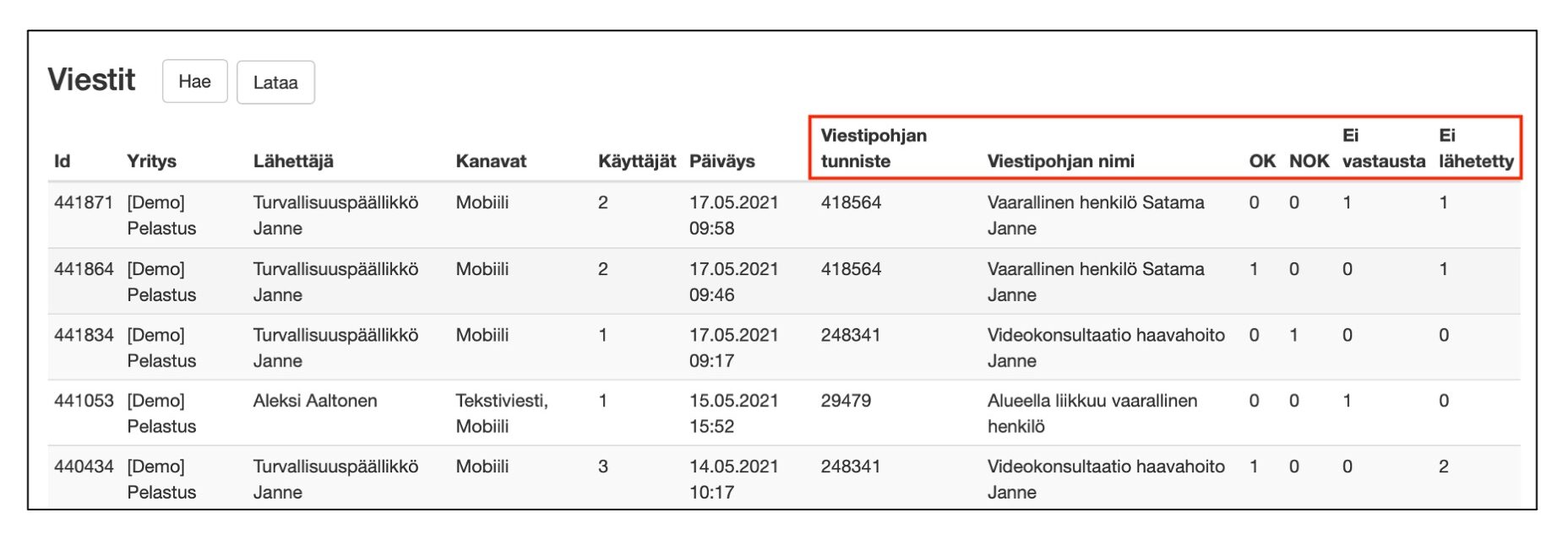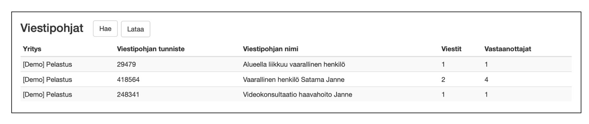 Viestipohjatilastoista nähdään suoraan, mitä viestipohjia ja kuinka paljon niitä organisaatiossa käytetään. Näin pääkäyttäjä pystyy seuraamaan laajemmalla tasolla esimerkiksi minkälaisia hälytyksiä organisaatiossa kertyy eniten ja varmistamaan parhaiden käytänteiden leviämisen organisaatiossa.