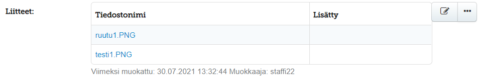 - Liitteet: Liitteet-päänäkymässä näkyvät liitteet tai osa niistä.