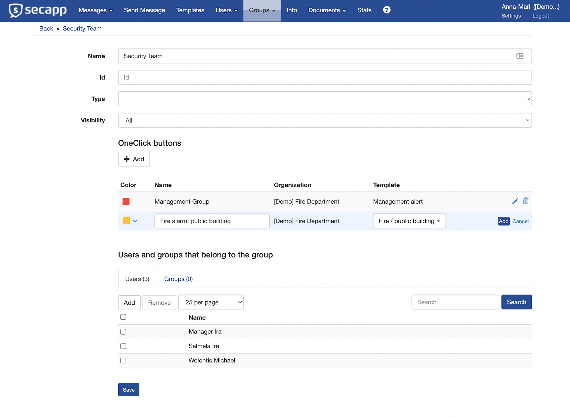 Secapp now allows you to manage and organize OneClick buttons (formerly known as Panic Buttons) by groups